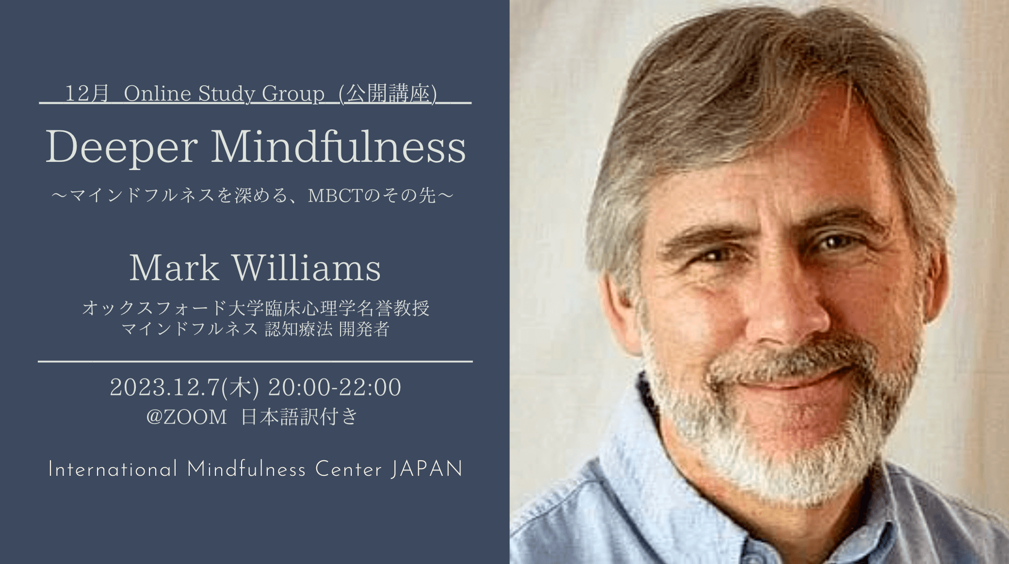 【マインドフルネス公開講座】Deeper Mindfulness 〜マインドフルネスを深める、MBCTのその先〜(12月7日)