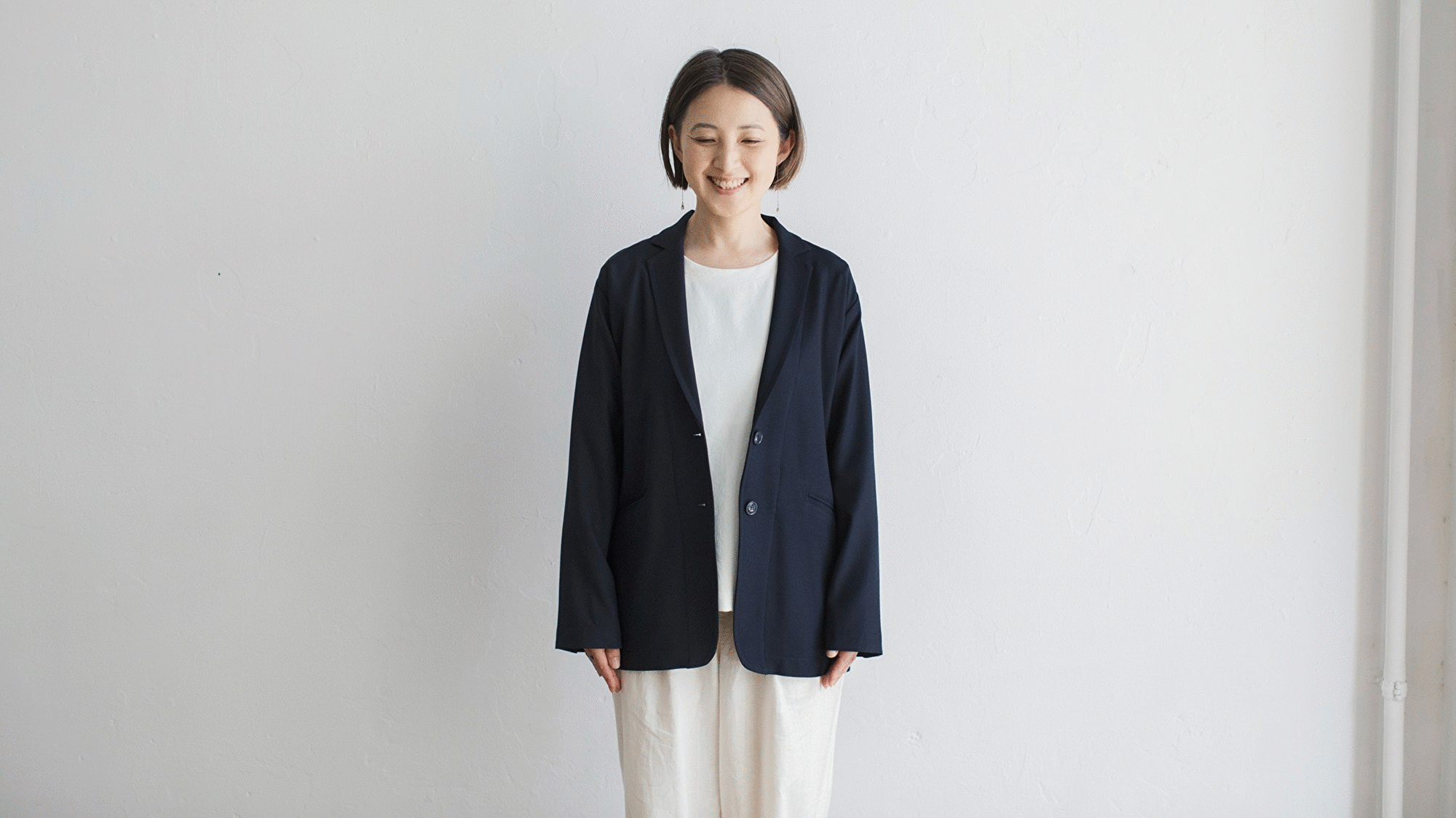大塚/読者も年を重ねる中で、今の年齢に合っていて、普段着よりもちょっとおしゃれな気分が上がるはおりものを提案したくって。カーディガン以上、コート未満の気軽に着られるはおりもの、だからジャケットなんです。さらに天然素材見えする生地選びもこだわりました。
