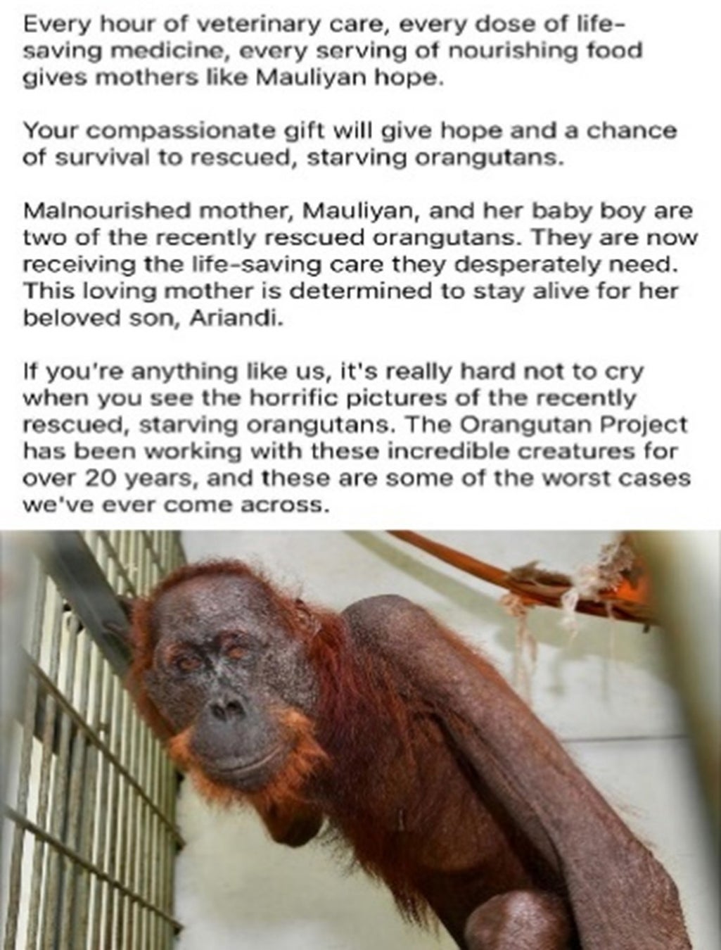 ■オラウータンについてスマートフォン付近で会話した結果、動物慈善団体の広告を受信