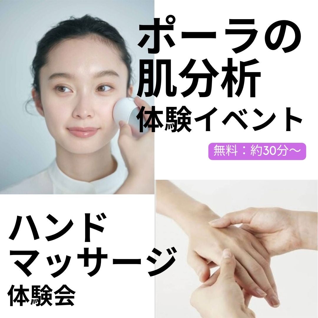 内 容:体験メニュー/ハンドマッサージ・首肩マッサージ・肌分析体験(すべて無料)