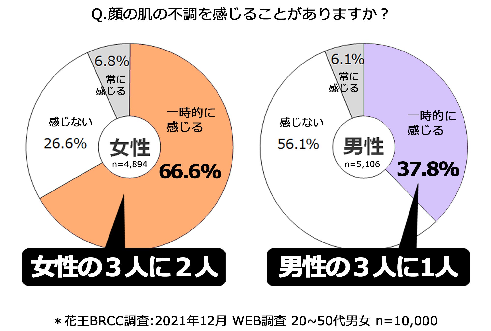 肌の不調悩みはジェンダーレス 女性の3人に2人、男性の3人に1人は肌状態がゆらぐ! 花王BRCC 季節の変わり目 肌の不調に関する意識調査を実施