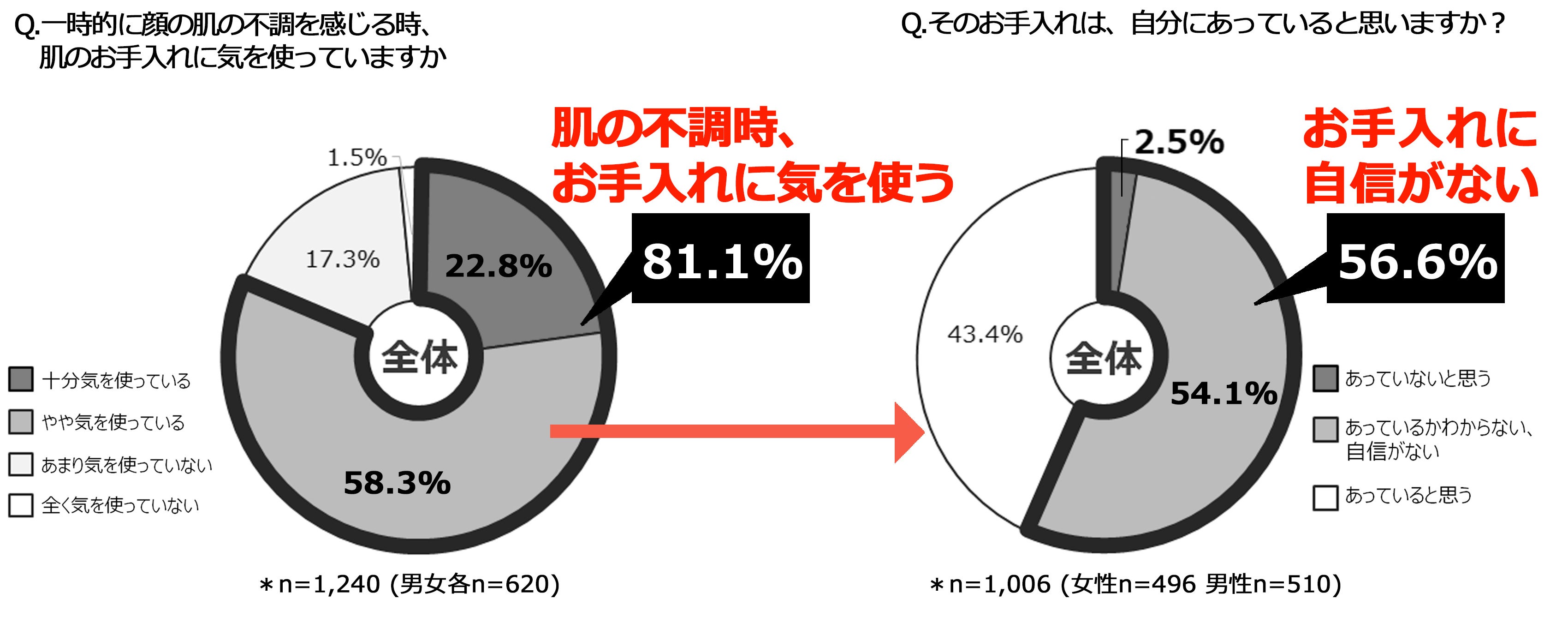 ・肌の不調時、8割以上が「肌のお手入れに気を使っている」がその半数はお手入れに自信がない