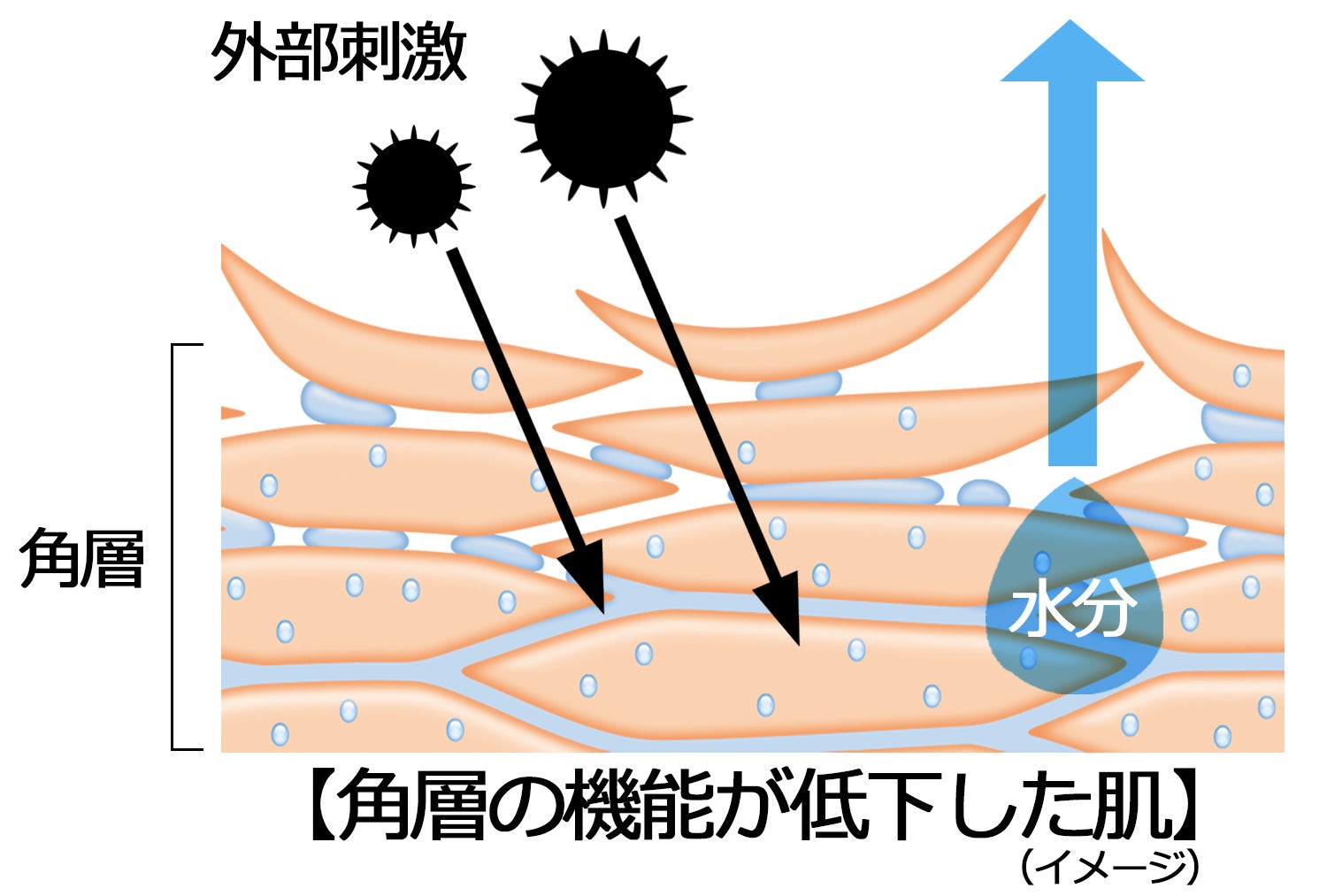 主な原因として、角層の機能の乱れが考えられます。肌の最も外側にある角層には、2つの機能があります。ひとつは、外部からのほこりや刺激を防ぐとともに、体内の水分の過剰な蒸散を防ぐ「バリア機能」。もうひとつは、肌表面のみずみずしさを保つ「保湿機能」です。これらがうまく働くと、肌は健やかな状態を保てます。しかし冬~春にかけては、冬の間に乾燥した空気や冷気にさらされてダメージを受けた肌が、その状態を改善しようと働くため、その過程でターンオーバーが乱れて角層の剥離量が増加。バリア機能や保湿機能も乱れがちに。