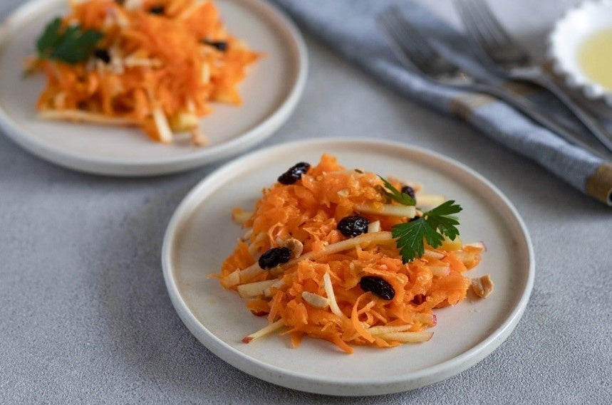 ④ ③に水けを絞ったにんじん、②のりんごを加えてあえる。あればピーナッツ、レーズン、クミンを一緒に加える。