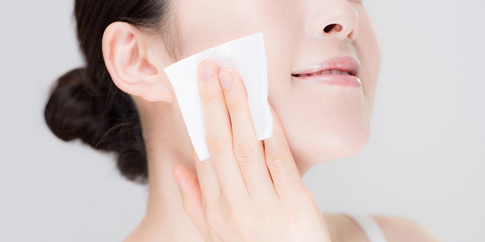 適量(500円玉大)をコットンに取り、顔の中心から外側に向かって、やさしくふきとるようにお使いください。