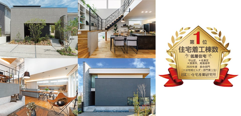 株式会社住宅産業研究所が、2020年度(2020年4月1日~2021年3月31日)の建築確認申請をベースに推計したデータにて、名古屋市守山区(70棟)、尾張旭市(20棟)で総合1位の認定を受けました。また、名古屋市名東区(25棟)、清須市(15棟)でも大手ハウスメーカーを除く地域ビルダー部門で1位となりました。