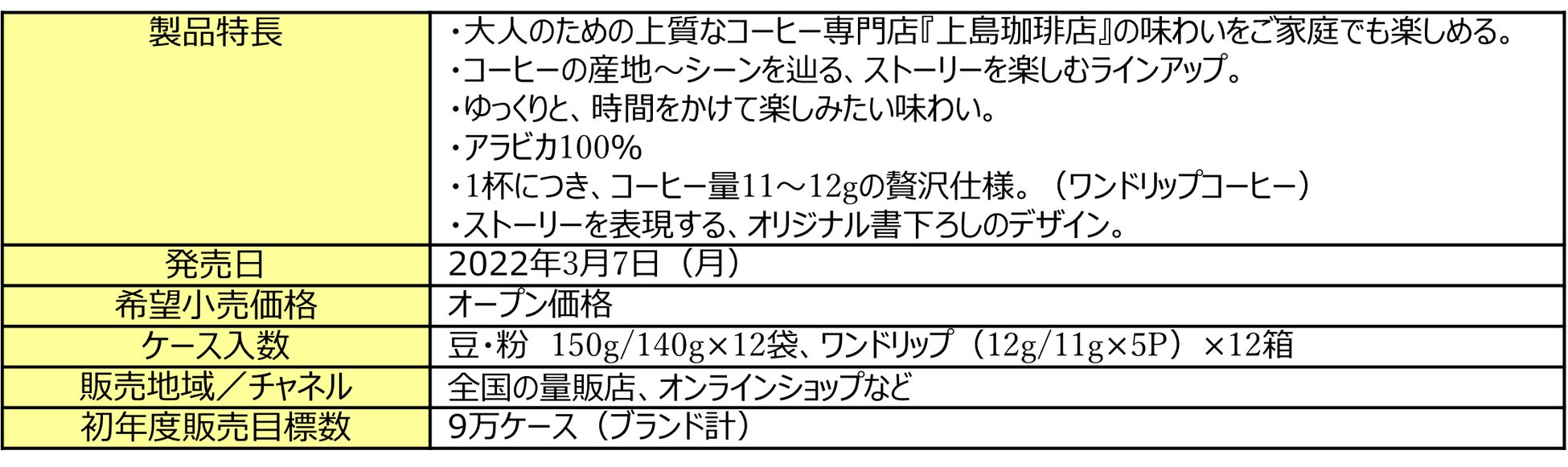 ■『上島珈琲店』レギュラーコーヒー製品概要
