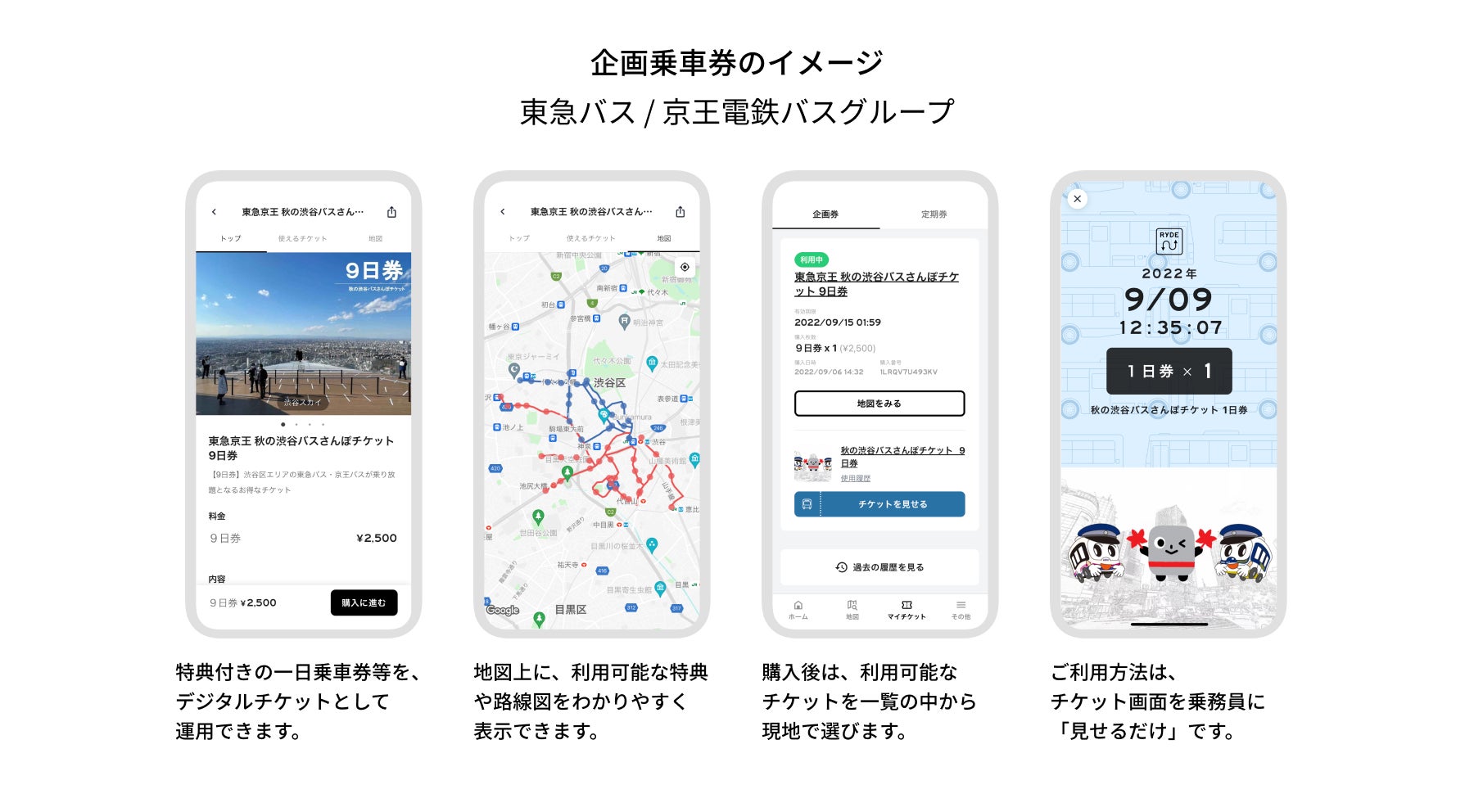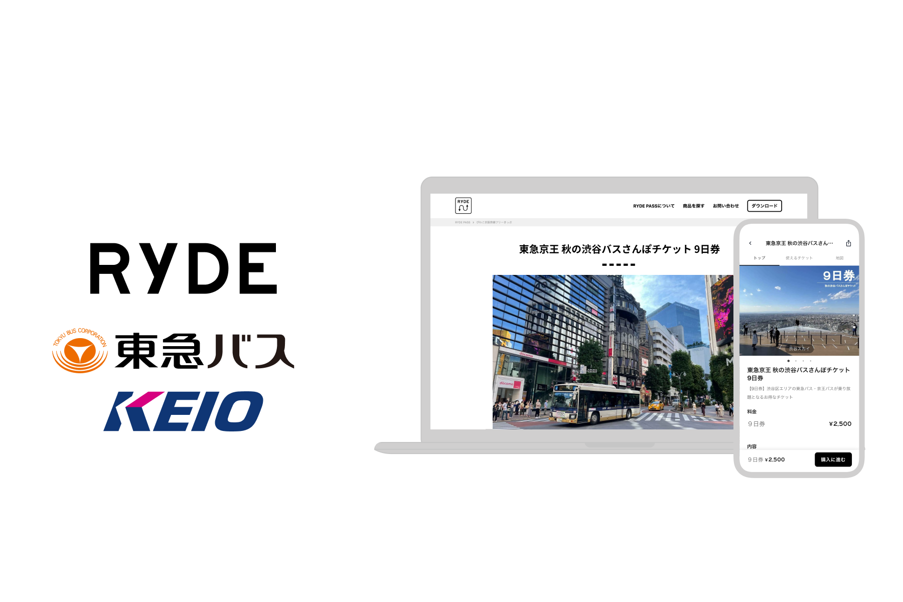 二次交通のDXを推進するRYDE株式会社(本社:東京都渋谷区、代表取締役:杉崎正哉、以下「RYDE」)は東急バス株式会社(本社:東京都目黒区、取締役社長:古川卓、以下「東急バス」)と京王バス株式会社(本社:東京都府中市、代表取締役社長:宮坂周治、以下「京王バス」)とともに、期間限定でデジタル乗車券「東急・京王 秋の渋谷バスさんぽチケット」の販売を開始します。モビリティプラットフォーム「RYDE PASS」上で、同乗車券の購入が可能となり、各社の渋谷区エリアのバス路線をお得に便利にご利用いただけます。