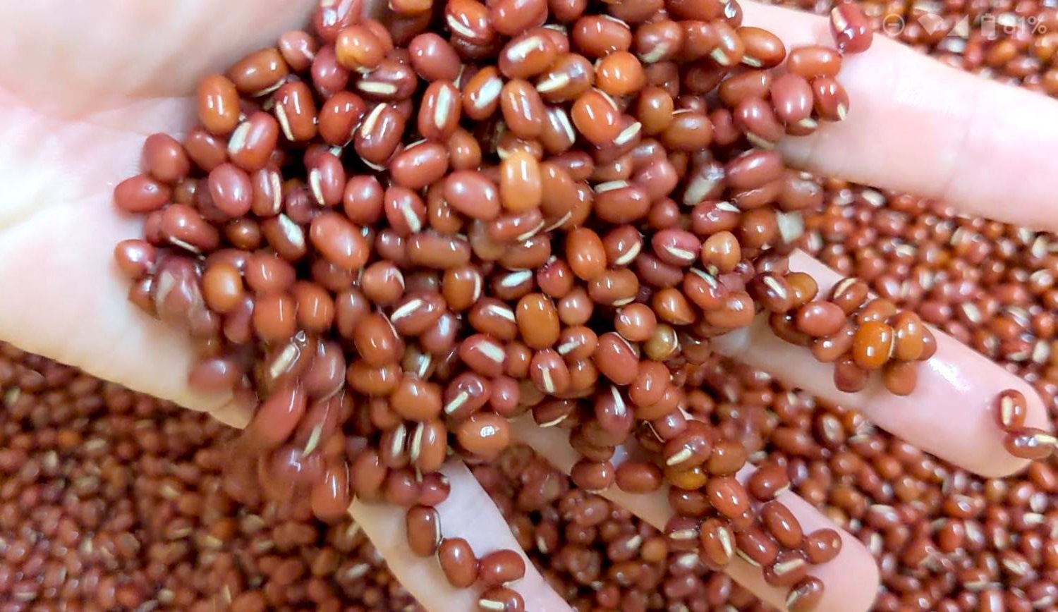 北海道産の小豆を手で綺麗に水洗いします。