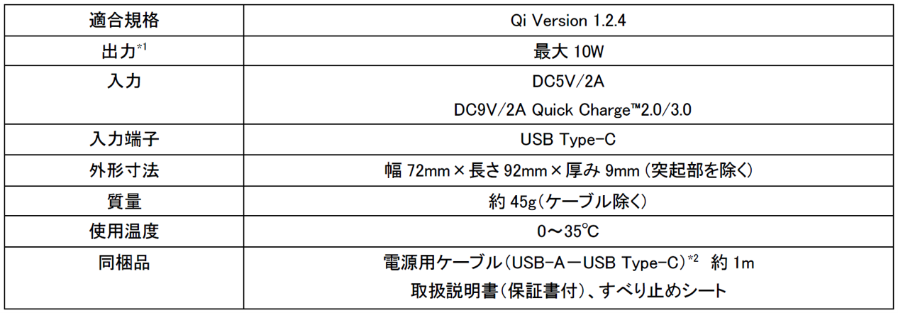 *1 最大10W出力:5Wを超える充電は対応している機種のみです。5Wを超える充電にはQuick Charge™2.0以上に対応するACアダプターが必要です。