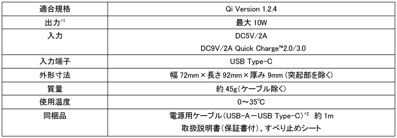 *2 「Qi(チー)」規格に対応/準拠:本製品は「Qi」規格に準拠していますが、すべての「Qi」規格機器との互換性を保証しているものではありません。スマートフォンをケースに装着していると、充電できない場合があります。充電できない時は、ケースを取り外して充電してください。