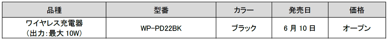 充電が速い最大10W出力(*1) スリムでコンパクトなワイヤレス充電器「WP-PD22」発売
