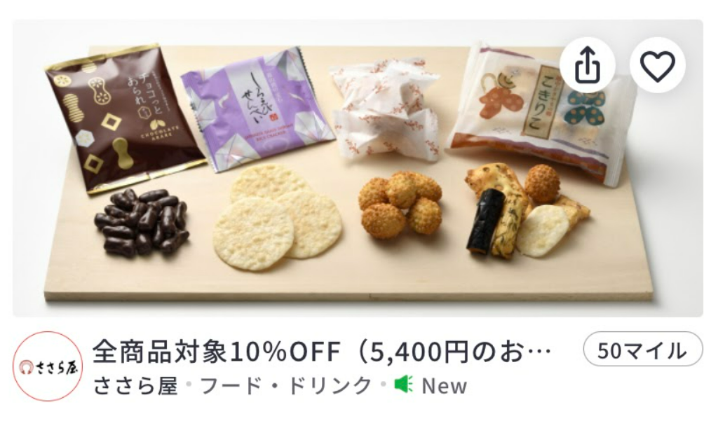 貯まったマイルとの交換で「ささら屋公式オンラインショップ」で使える10%OFFクーポンをGET