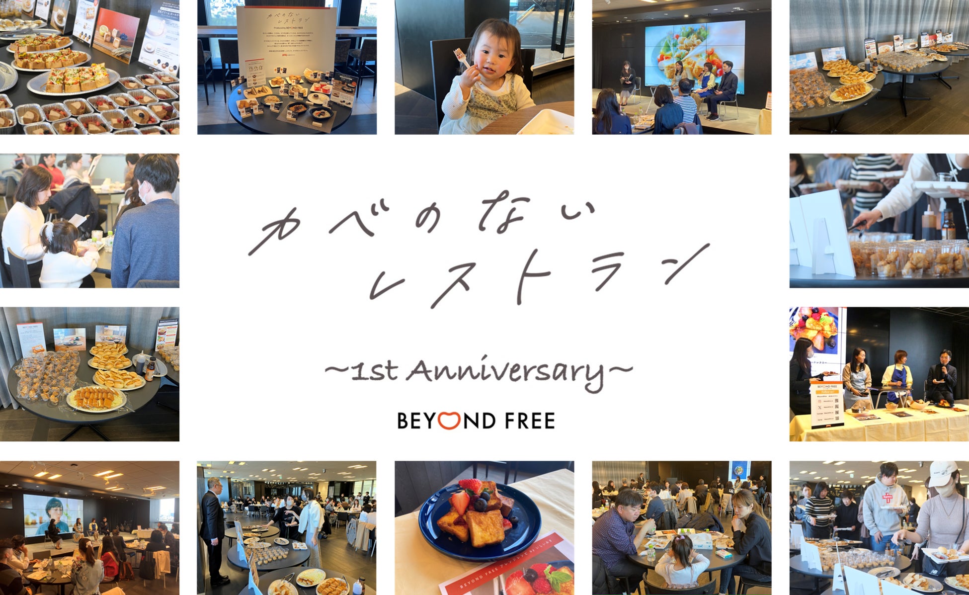 テーブルマーク株式会社(本社:東京都中央区、代表取締役社長:松田要輔)の展開するBEYOND FREE(ビヨンドフリー)は、誕生1周年を記念し、3月3日(日)に東京都赤坂にて「カベのないレストラン ~1st Anniversary~」を開催いたしました。当日はたくさんのご応募の中から抽選で約80名のお客様にお越しいただき、食制約のある方もない方も一緒にBEYOND FREEの食事を楽しんでいただきました。