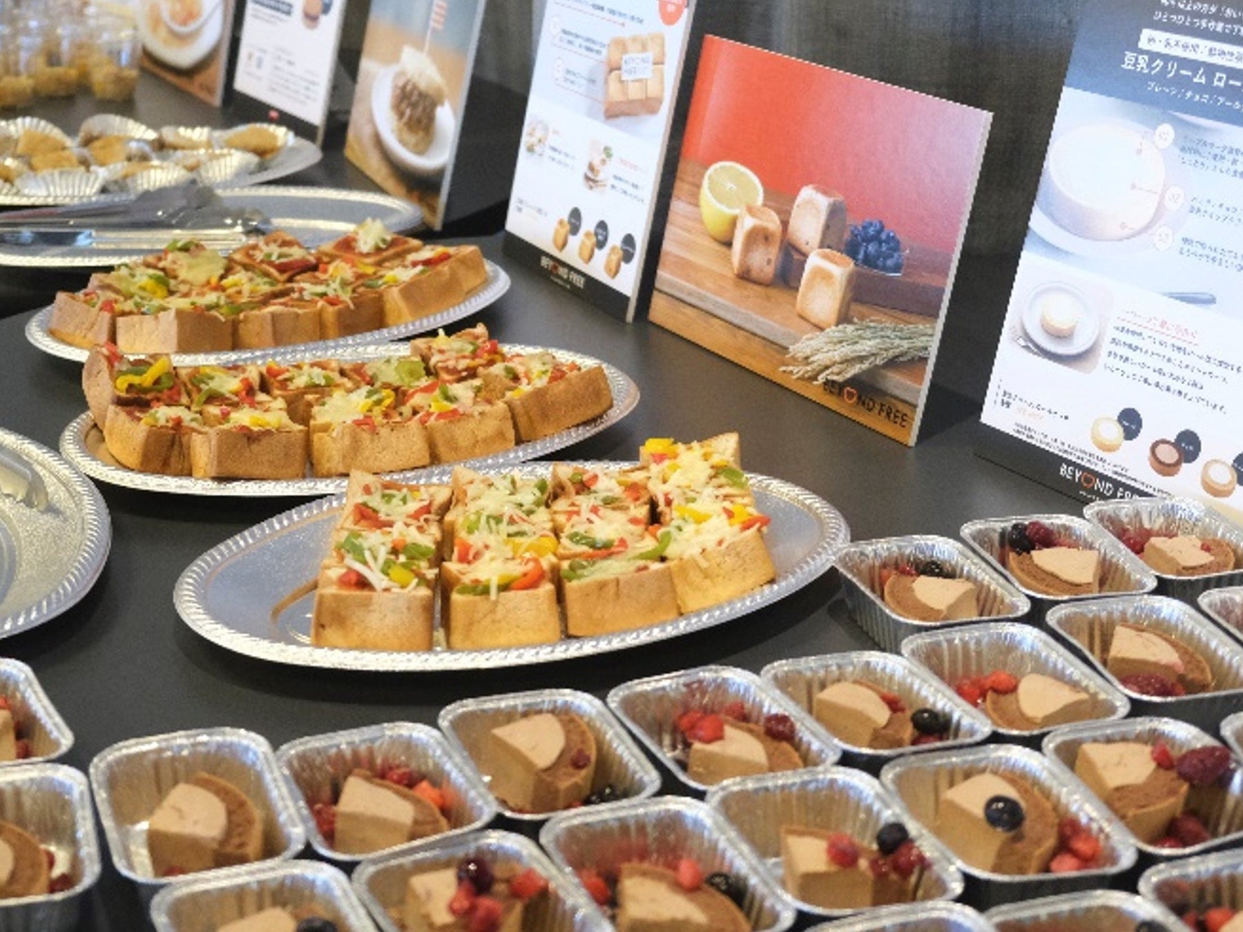 また、ちょっとしたアレンジができるのもBEYOND FREEのポイントの1つ。前回イベント時にいただいたご要望にお応えし、『玄米ブレッド プレーン』を使用したピザ風トーストや『おからこんにゃくで作った カツ』のカツサンドなどアレンジメニューも準備いたしました。