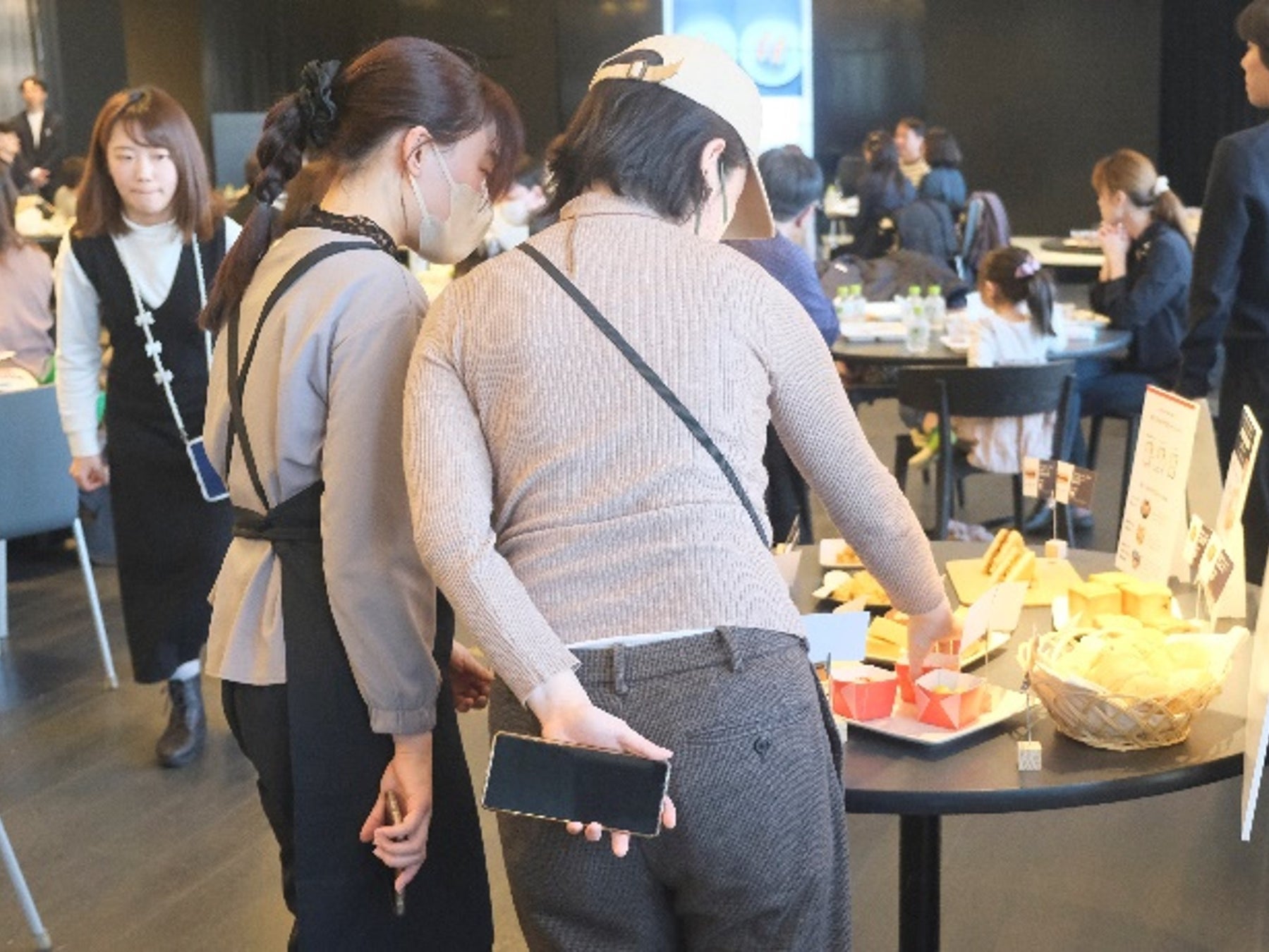 皆様が楽しそうな表情を浮かべながらビュッフェを取るための列を作っており、並んでいる間も「どれを食べる?」「おいしそうだね」という会話が弾んでいました。普段なかなかビュッフェ形式での食事を楽しむことができないという声をいただくことが多い食物アレルギーのある方/ヴィーガンやベジタリアンの方にも多くご参加いただき、選ぶところから食事を楽しんでいただきました。