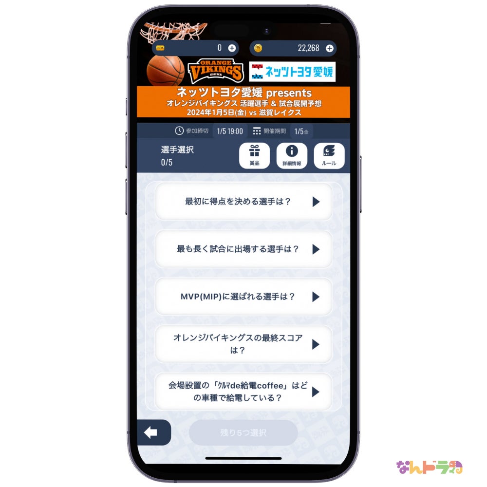 イノベーションの力で新たなスポーツ・エンターテインメントを創造し、まだ見ぬ感動と熱狂を提供するアプリ「なんドラ」を運営する株式会社なんでもドラフト(本社:東京渋谷区、代表:森井啓允)は、2024年1月5日(金)・6日(土)滋賀レイクス戦にて、マッチデーパートナーを務めるネッツトヨタ愛媛株式会社(以下、ネッツトヨタ愛媛)提供のバイクス活躍選手&試合展開予想を開催します。