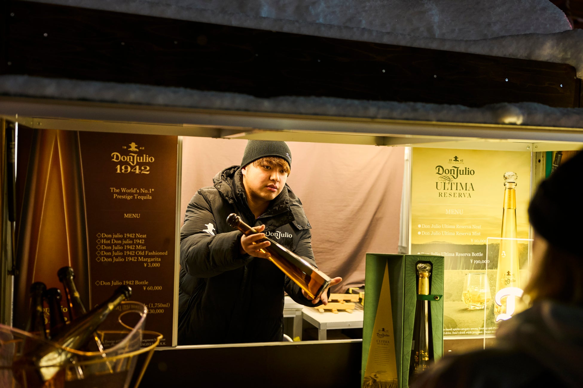 スノードーム内では、貴重なアガベを使用し、ドン・フリオブランドの中で最も希少性が高い高峰ライン「ドン・フリオ ウルティマ リセルヴァ」も提供。訪れたゲストに、36ヶ月熟成させた贅沢なエクストラアネホテキーラの芳醇な味わいをご堪能いただきました。