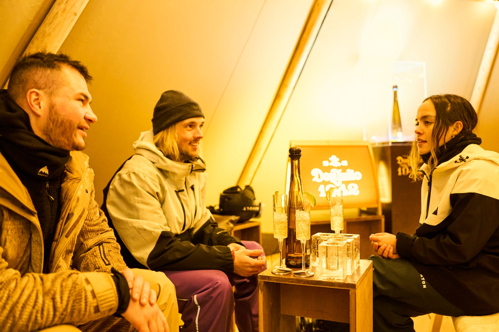 氷でつくられたバーカウンターでのドリンク販売や氷のテーブルを設置したアイスラウンジなど、雪と氷の世界を堪能しながらフィンガーフードとともに特別な一杯を楽しめます。温かいテント内ではゆっくりとくつろげる休憩スペースもあり、アフタースキーのラグジュアリーなシーンを演出します。