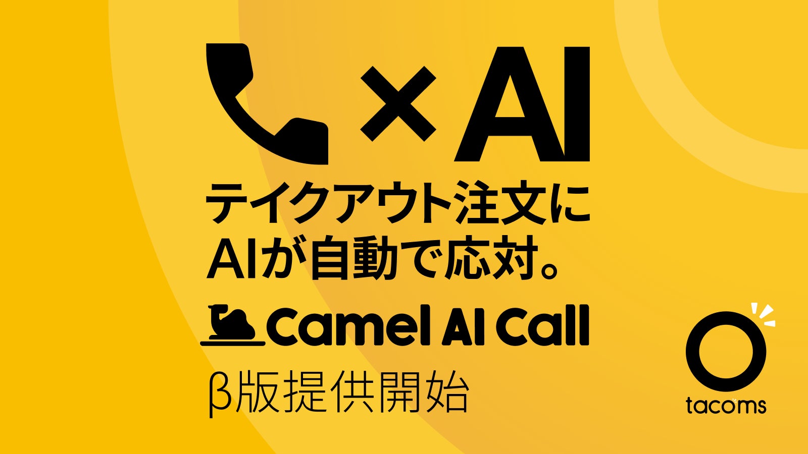 株式会社tacoms(タコムス)は、飲食店の電話対応を自動化する音声AIサービス「Camel AI Call」のβ版提供を開始しました。本サービスは、店舗にかかってくるテイクアウトの電話注文をAIが自動で受付・応対し、オペレーション負荷の軽減と売上機会の最大化を同時に実現します。