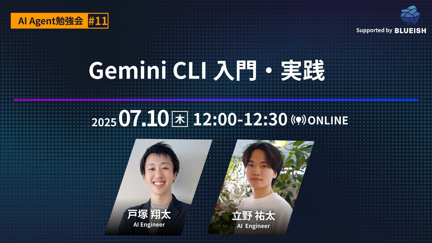 AIエージェント構築の株式会社BLUEISH(東京都港区、代表取締役 為藤アキラ)は、今から理解する”Gemini CLI”をテーマにした無料オンラインセミナーを7月10日(木)12時からの30分間で開催します。