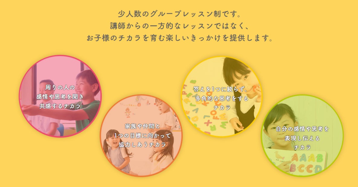 これらを育めるように講師からの一方的なレッスンではなく楽しいきっかけを提供し、クラスみんなで作り上げています。
