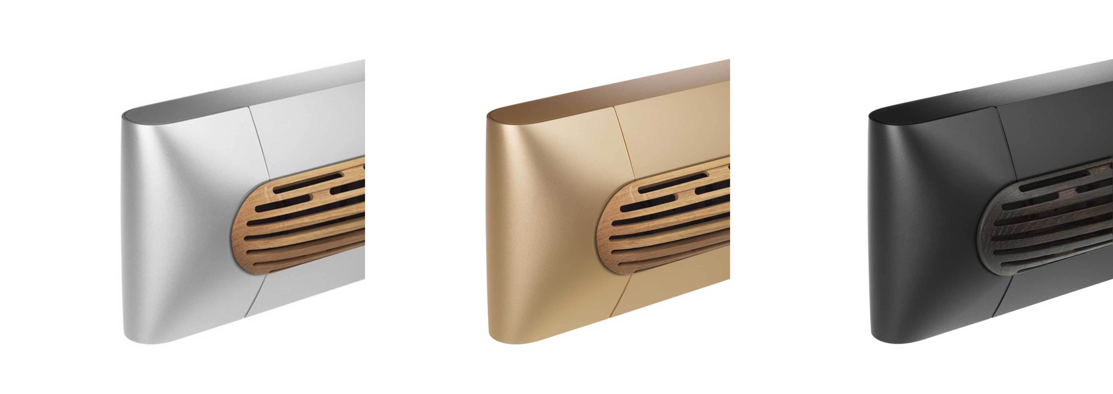 Beosound Premiereは、Natural Aluminium、Gold Tone(2026年2月販売開始予定)、Black Anthracite(2026年3月販売開始予定)のカラーバリエーションで展開。壁掛けと卓上設置の両方が可能なスタンドが付属します。Beosound Premiereはスピーカードライバーを際立たせるデザインとなっていますが、grey melangeのファブリックカバーや、オーク材とダークオーク材のウッドカバーもオプションとして販売予定。精密加工と完全な手作業で成形されたオークカバーは、木材の自然な美しさを引き出し、一点一点が唯一無二の表情を保証します。