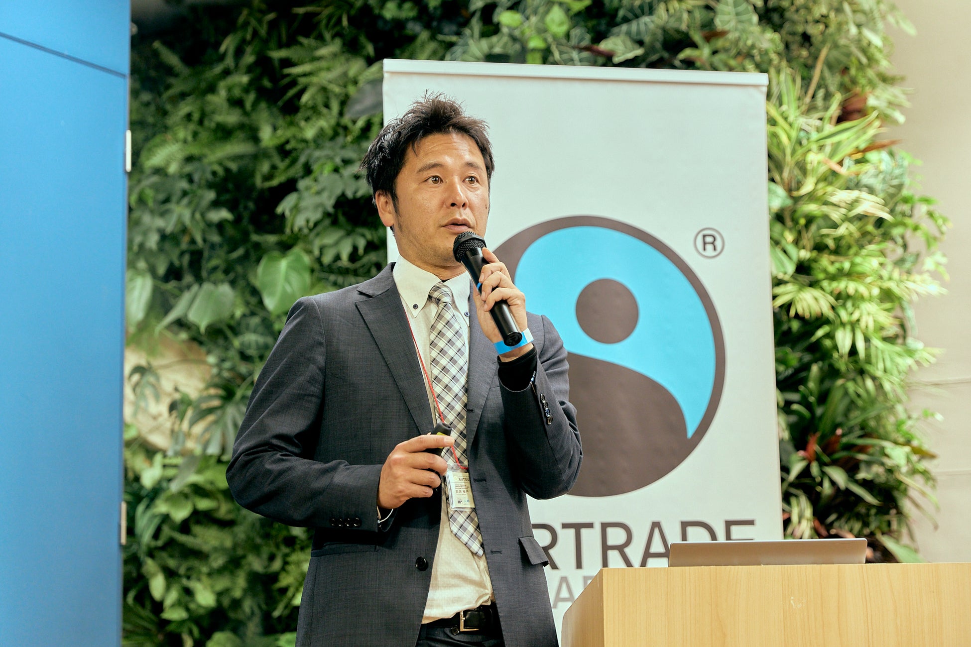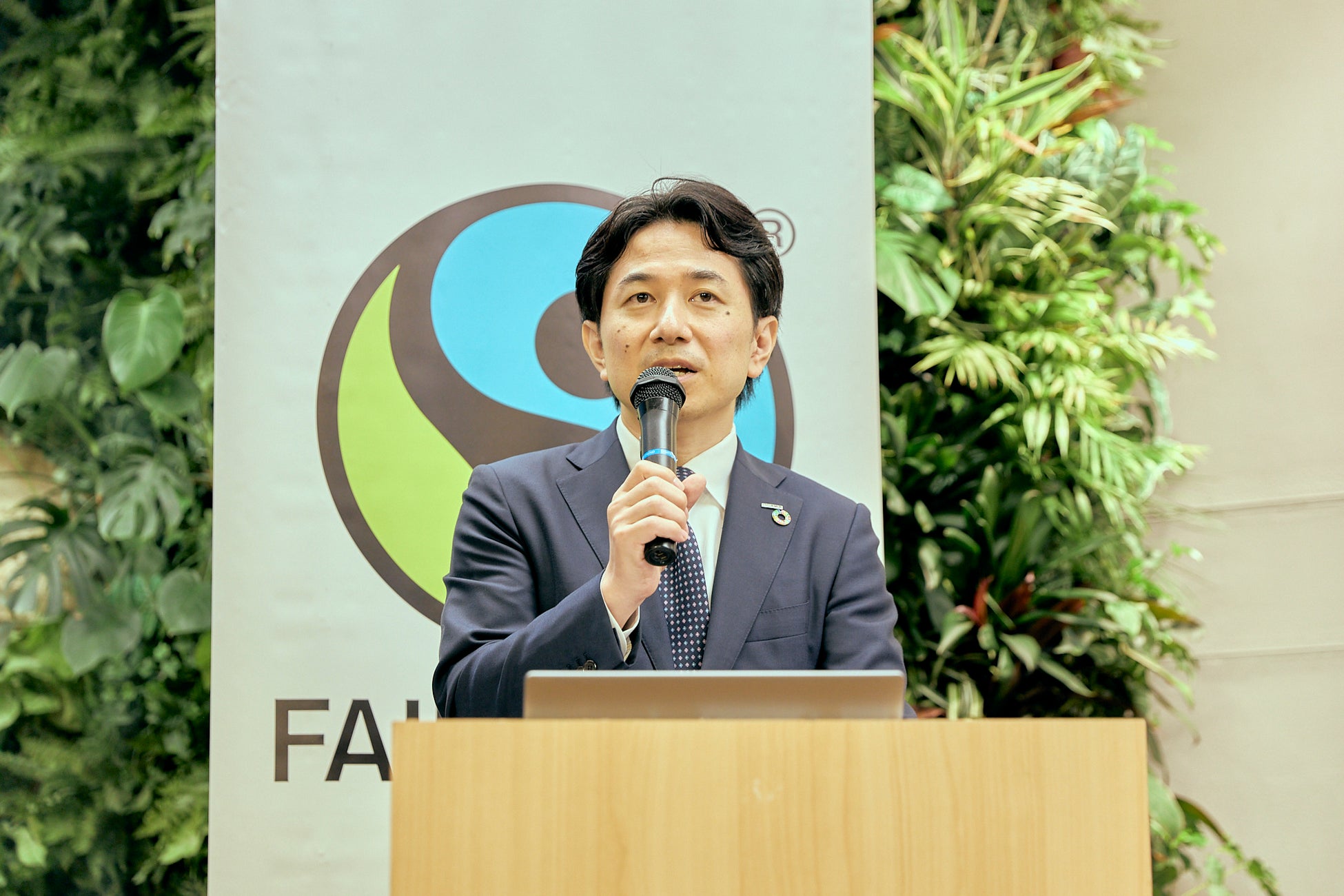 冒頭、潮崎から消費者のSDGsへの注目度の高さや企業の意識の高まりによるフェアトレード市場拡大の背景のほか、2025年秋に実施するフェアトレード企画展、日本で唯一のフェアトレードのアワード開催について発表がありました。