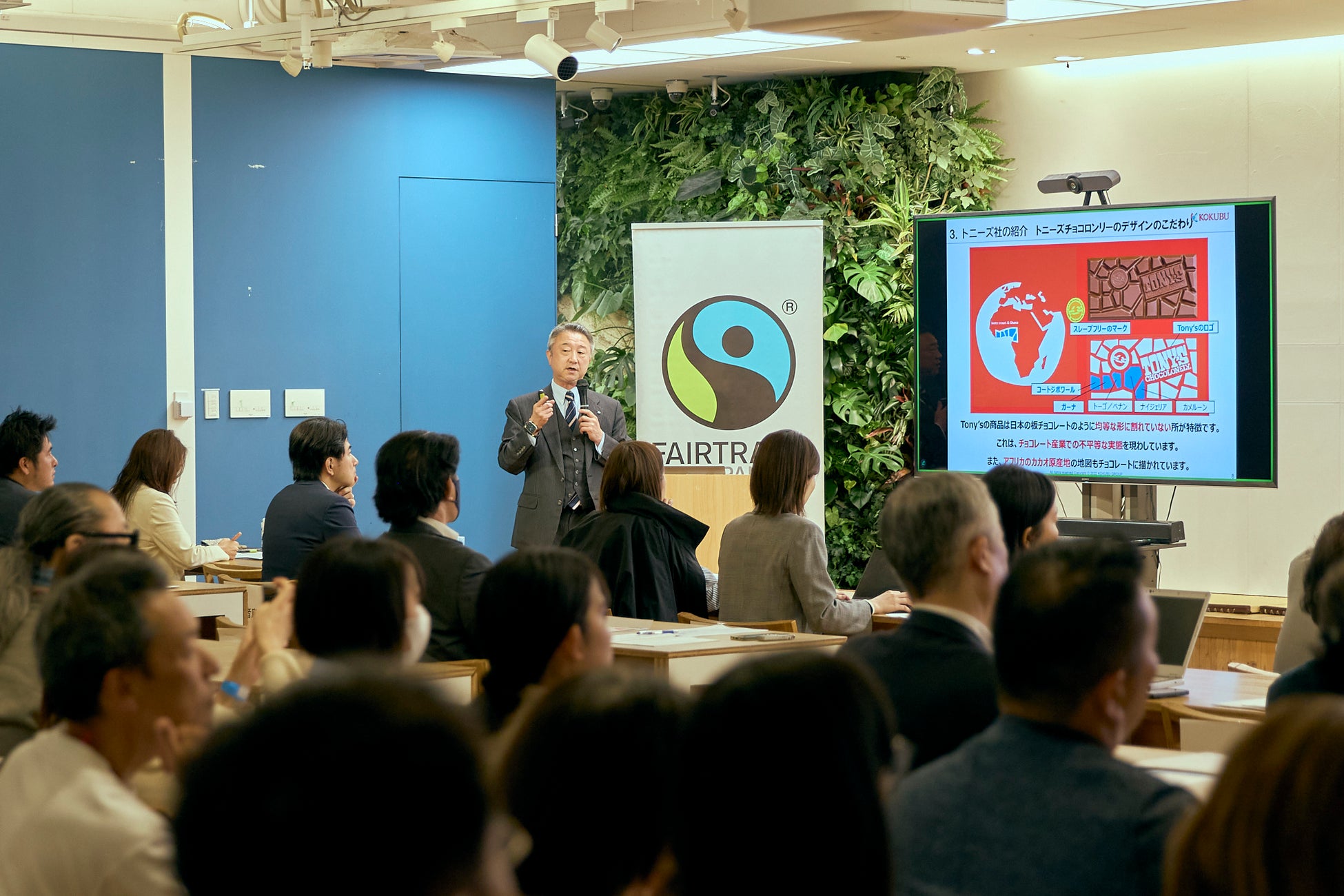 食品卸売大手の国分グループ本社株式会社からは、フェアトレードチョコレートとして人気の高い「トニーズチョコロンリー」や、チョコレート消費がヨーロッパに比べて少ない(西欧諸国に比べて約1/5ほど)日本向けの小サイズのチョコレートバー等について紹介がありました。