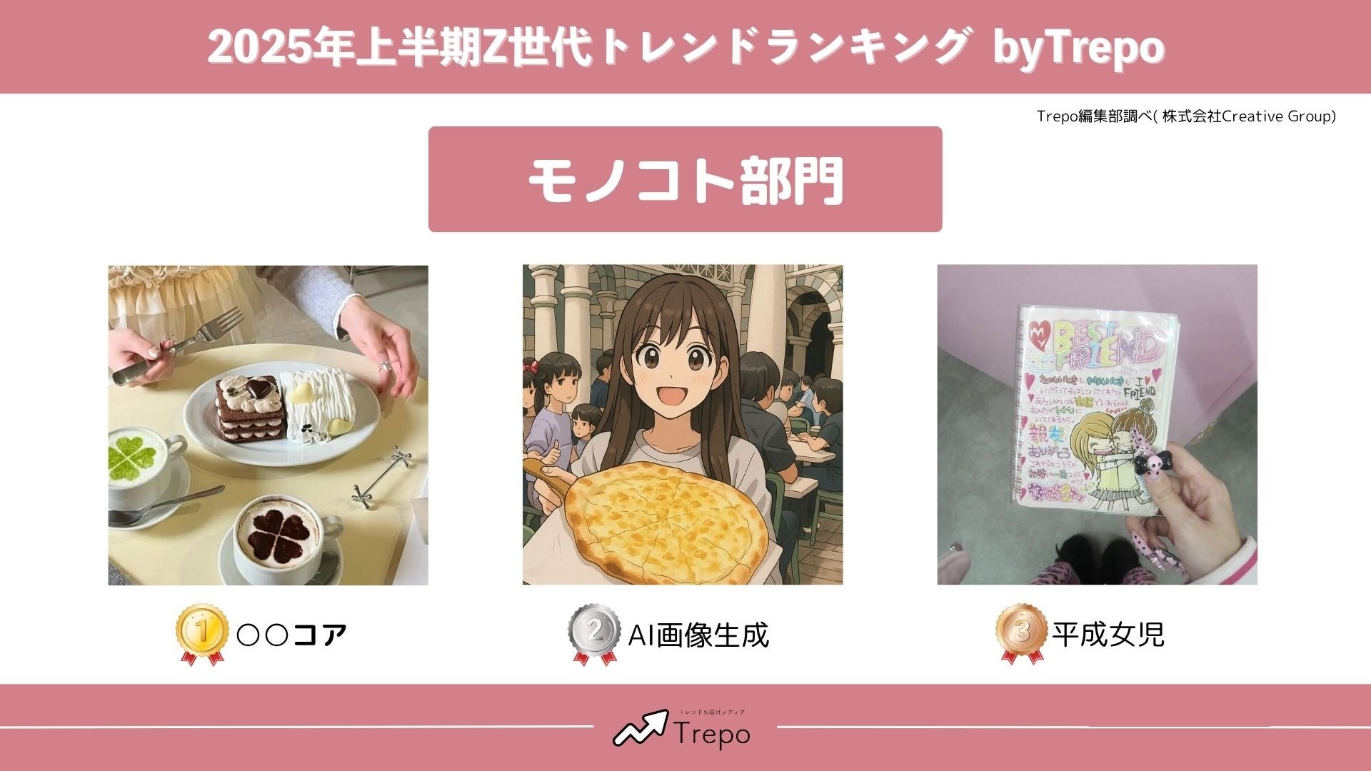 株式会社Creative Group(本社:東京都千代田区、代表取締役:中原一真)が運営する10代~20代女性向けトレンドメディア『Trepo(トレポ)』は、10代~20代の女性(Trepo girls)を対象に、2025年上半期のZ世代トレンド調査を行いました。WEBで実施したアンケート調査(以降「Trepo girls調査」)の結果をお知らせします。