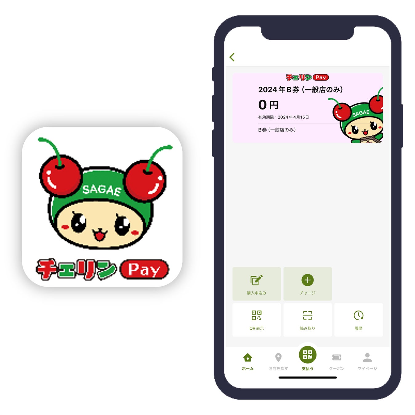 第1弾となる「キャッシュレスさがえさくらんぼプレミアム商品券」事業を開始する際にリリースした、キャッシュレス決済が可能なスマートフォンアプリです。