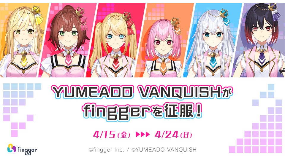 株式会社fingger(東京都品川区、代表取締役:吉江直人)は、リアルとバーチャルの次元を越えて生まれた6人組アイドルVtuberユニット「YUMEADO VANQUISH」とのコラボレーションイベントを、2022年4月15日(金)より開催いたします。