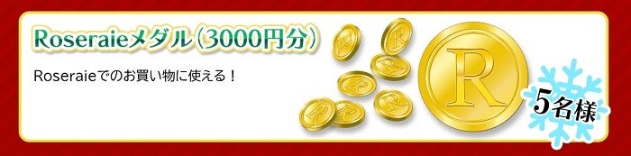 キャンペーン期間中にRoseraie新規会員登録で、通常200メダルのところ100メダル増量の300メダルをプレゼント!