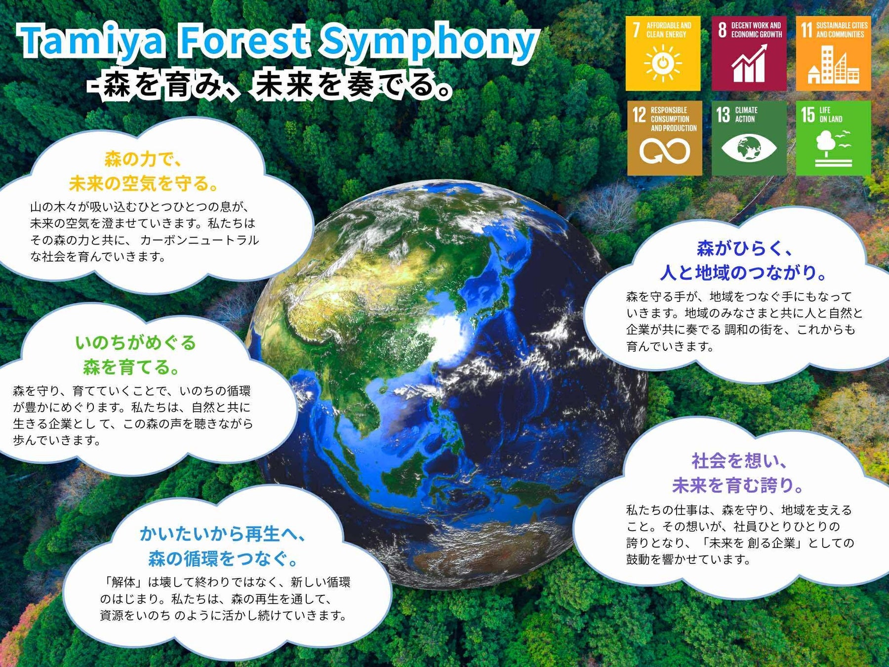 災害時の被災地への寄付、子ども食堂へのお米の定期提供、30ヘクタール以上の山林保有によるカーボンオフセット(Tamiya Forest Symphony)などを通じて、社会貢献を継続しています。