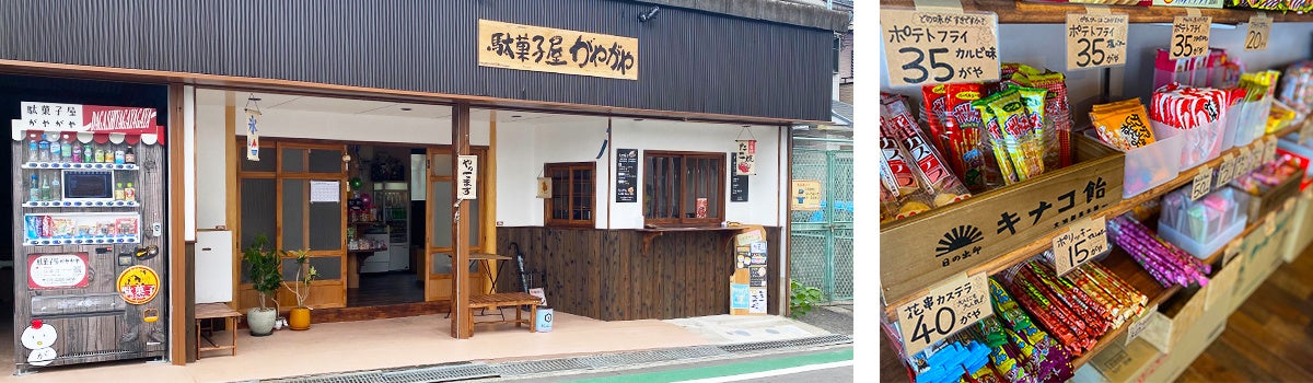 駄菓子屋がやがやは、昭和レトロな昔ながらの雰囲気を感じる「大人も楽しい!子供もワクワク!」するような駄菓子屋さんです。駄菓子の販売だけでなく、たこ焼きや串カツ、フライドポテトなども販売しており、放課後のお腹を空かせた子供たちや学生さんにとってはオアシスのような場所になっています。