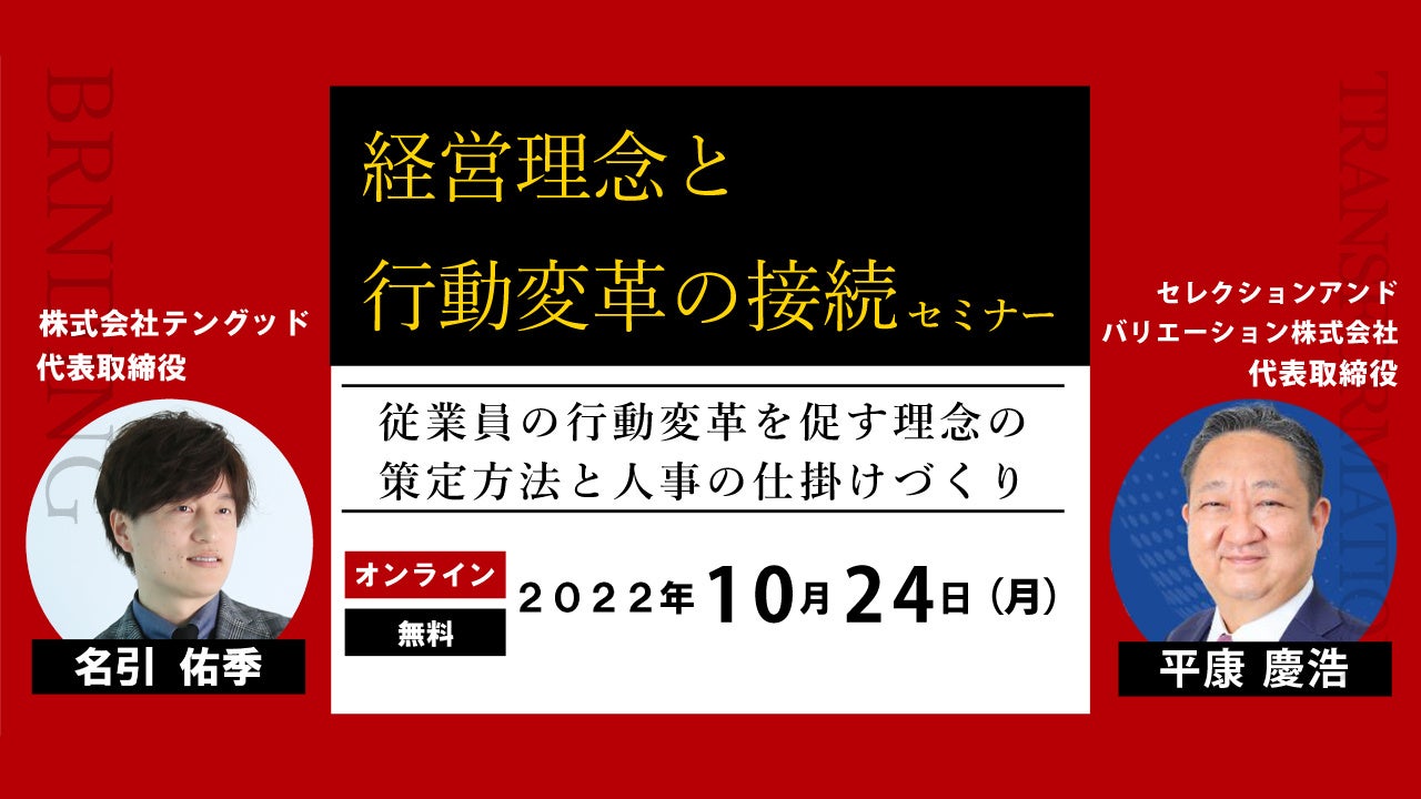 【2022/10/24(月)開催】経営理念と行動変革の接続セミナー ~従業員の行動変革を促す理念の策定方法と人事の仕掛けづくり~