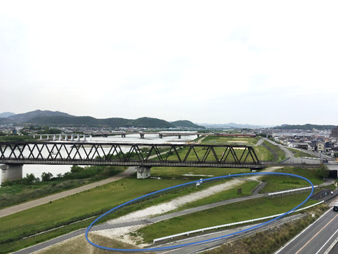 ■実施場所:JR神戸線南の加古川左岸堤防天端(JR加古川駅より徒歩約10分)
