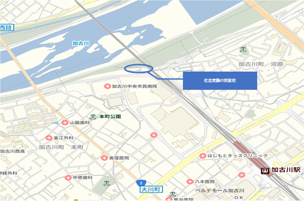 今回の社会実験は、市が目指す「かわまちづくり」の機運醸成と河川敷の集客ポテンシャルや課題の把握を目的として実施いたします。