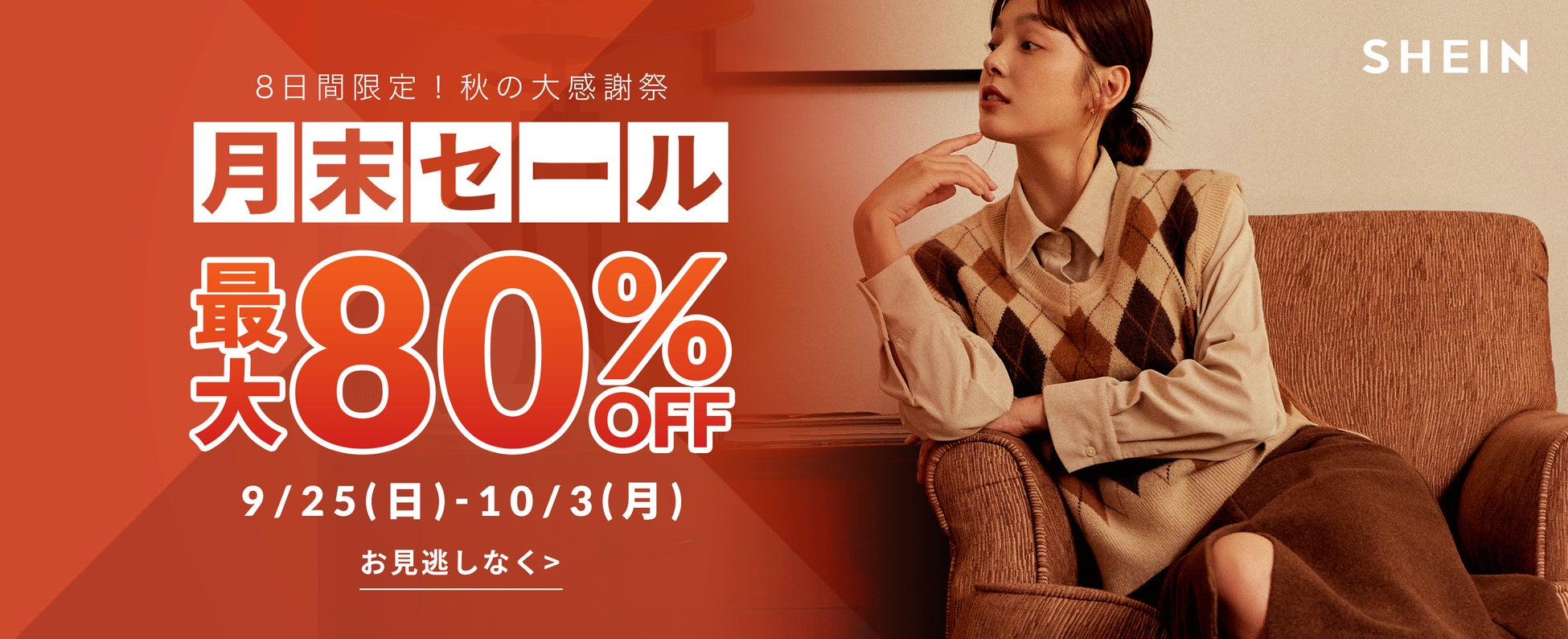 「SHEIN」の人気アイテムが4つのセール&5つのキャンペーンで最大80%OFF!秋の大感謝祭『月末セール』開催中!