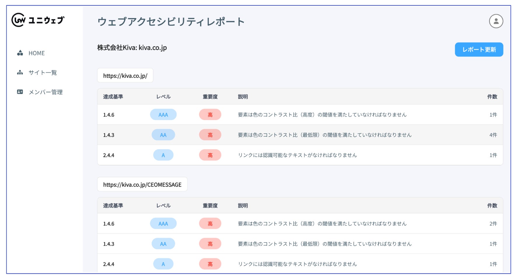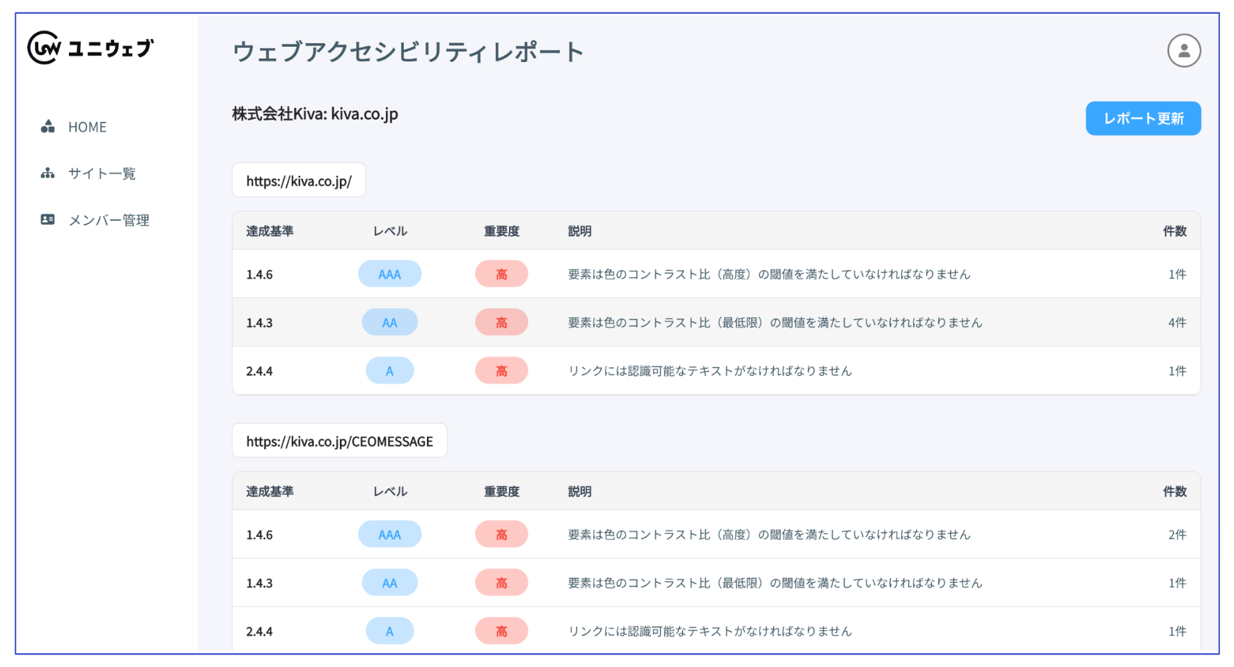 上記のような状況の中で、ウェブアクセシビリティ対応をするために、まずは自社サイトの状態を知りたいという声を多くいただき、診断レポート機能リリースに至りました。