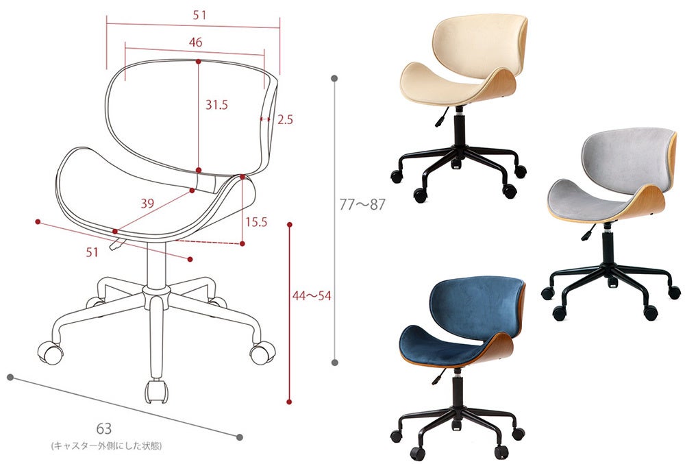 - サ イ ズ :(約)幅63×奥行63×高さ77~87cm、座面高さ:44~54cm