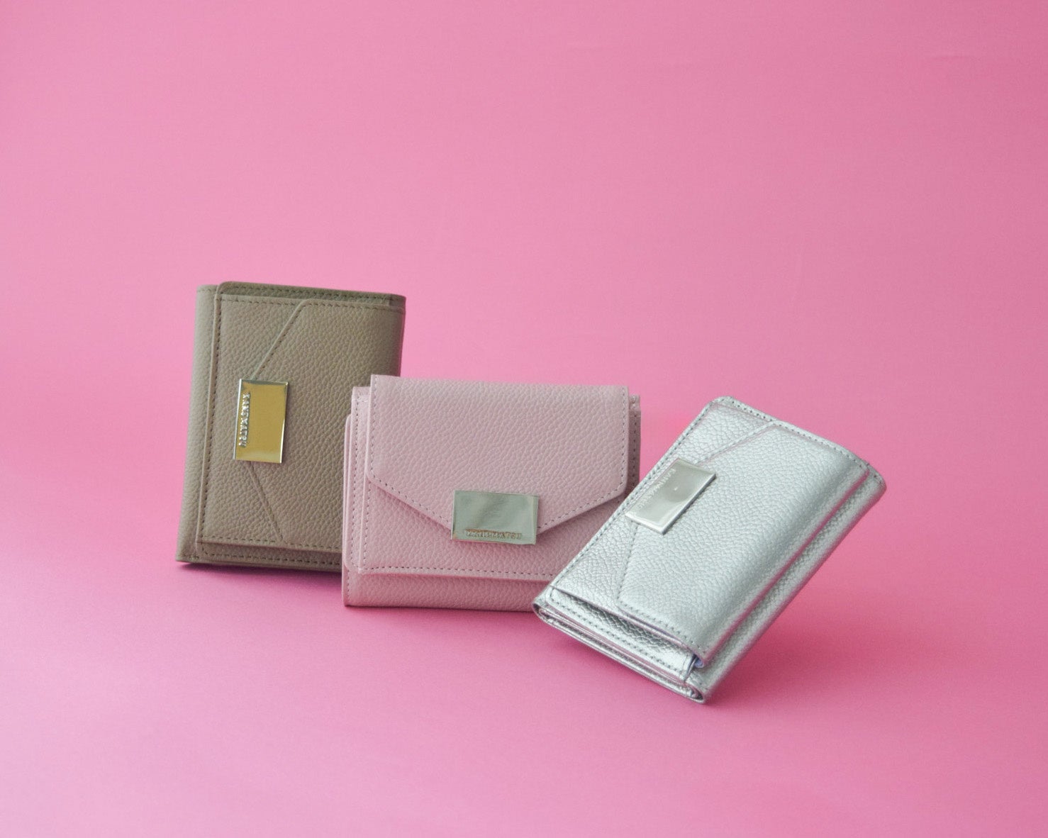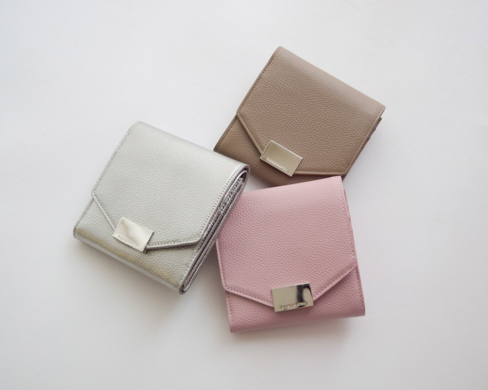 トレンドの小さめバッグにもぴったりなコンパクトな3つ折り財布。コイン入れと、お札入れ、カード入れ×6枚入る仕様です。コイン入れは独立したデザインで、コインの取り出しがしやすいのが嬉しいポイント。コンパクトなサイズながら実用性の高いアイテムです。