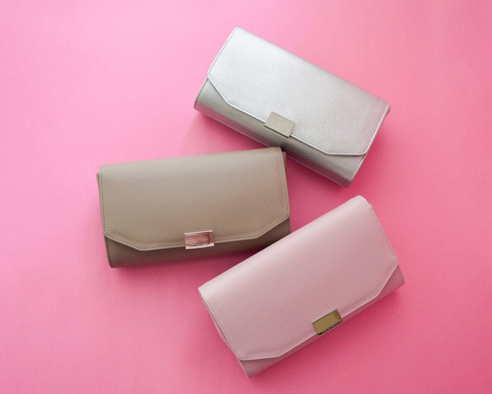 タブレット型の金具がポイントのレザー小物は、スタイリッシュでトレンドに左右されず、長く使えるデザイン。質感やカラーの違いも楽しめて、自然と毎日に馴染むからこそ、ふだん使いにも贈り物にも選びやすいシリーズです。