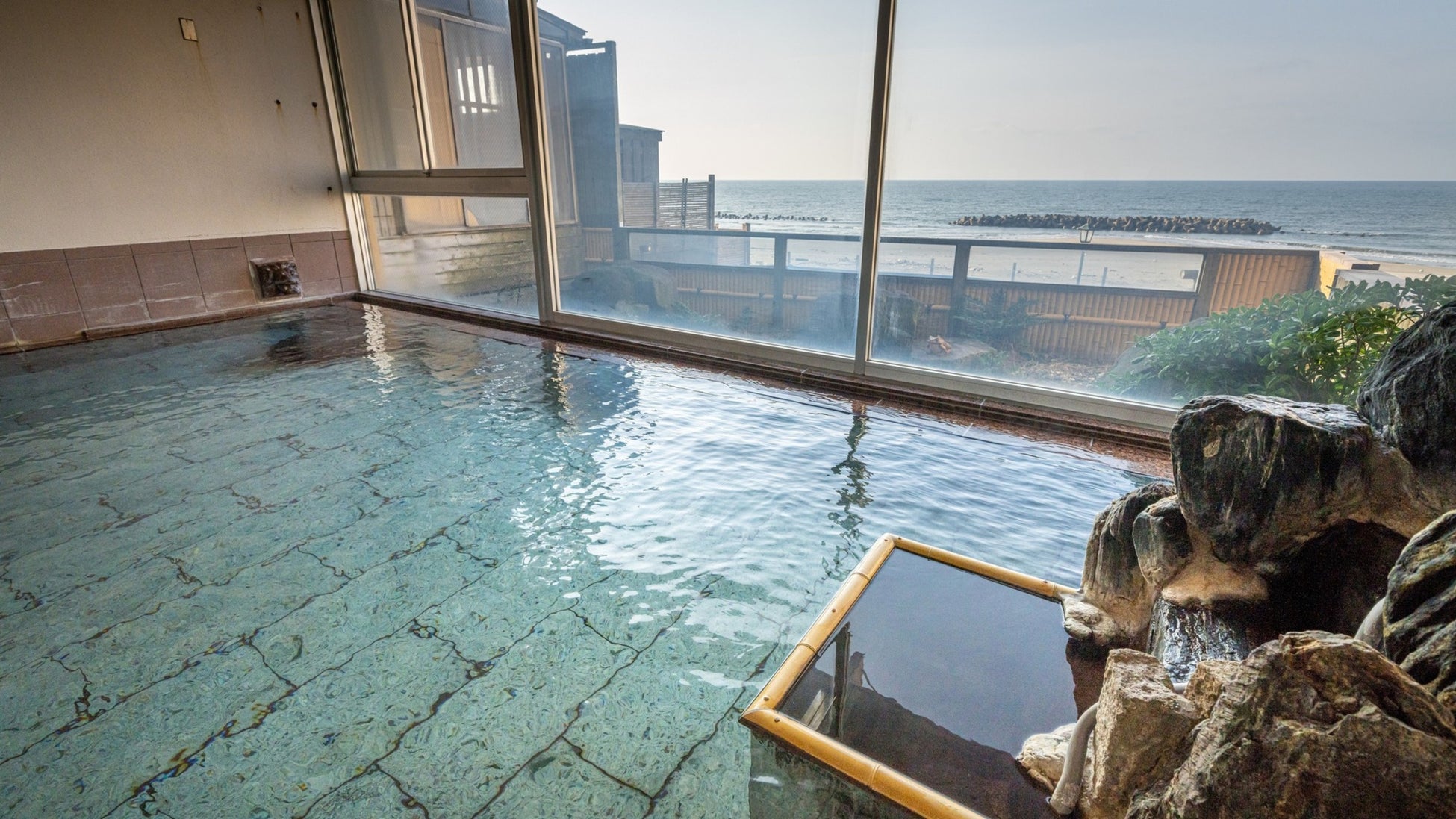 湯野浜海水浴場まで歩いて30秒!全室オーシャンビューのお部屋、湯野浜温泉源泉掛け流しの温泉、地元の食材にこだわった料理、素足でくつろげるゆったりとした館内など、さまざまなおもてなしで皆さまをお迎えします