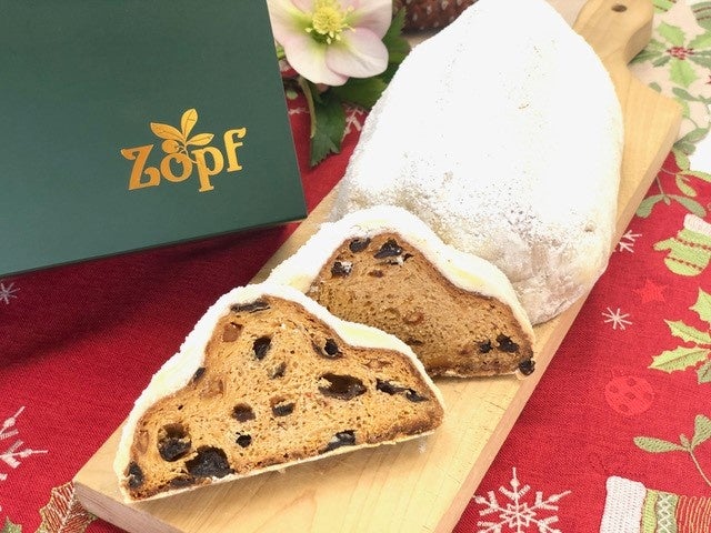 Backstube Zopf店頭での販売開始以来30年間、同じレシピで作り続けているオリジナルシュトレンです。約6か月間洋酒に漬け込んだドライフルーツを使っています。また、豊かなスパイス感を感じられます。