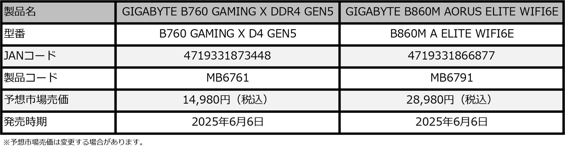 intel B760チップセット搭載、PCIe x16 Gen5 対応 GIGABYTE ゲーミング ATX DDR4 マザーボード「B760 GAMING X DDR4 GEN5」およびintel B860チップセット搭載、AORUS ゲーミング Micro-ATX マザーボード「B860M AORUS ELITE WIFI6E」の2製品を2025年6月6日(金)に発売いたします。