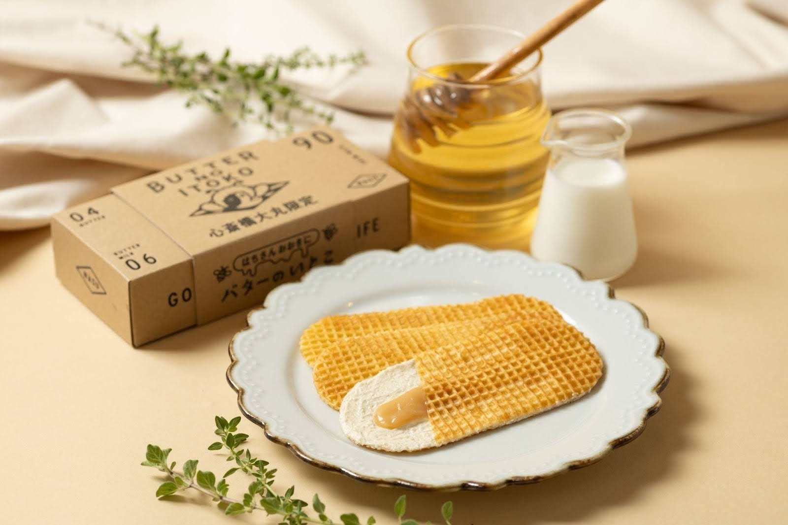 バター香るゴーフレット生地にバタークリームと無脂肪乳から作ったスキムミルクジャムをサンドした、「ふわっ・シャリッ・とろっ」の3食感がおいしい『バターのいとこ』から、「心斎橋のはちみつ」を使ったハニー&ミルク味が登場。
