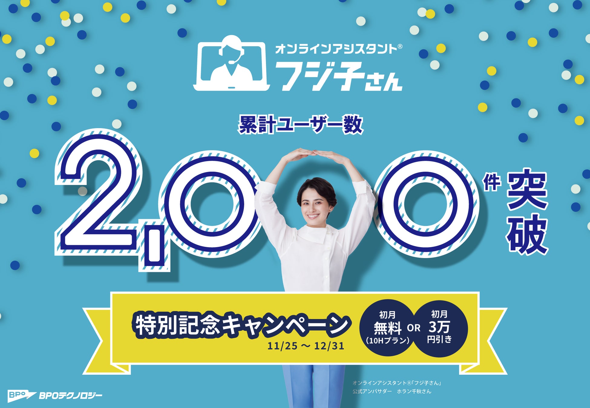 オンラインアシスタント®「フジ子さん」サービス累計ユーザー数が2,000件突破記念キャンペーン開催!