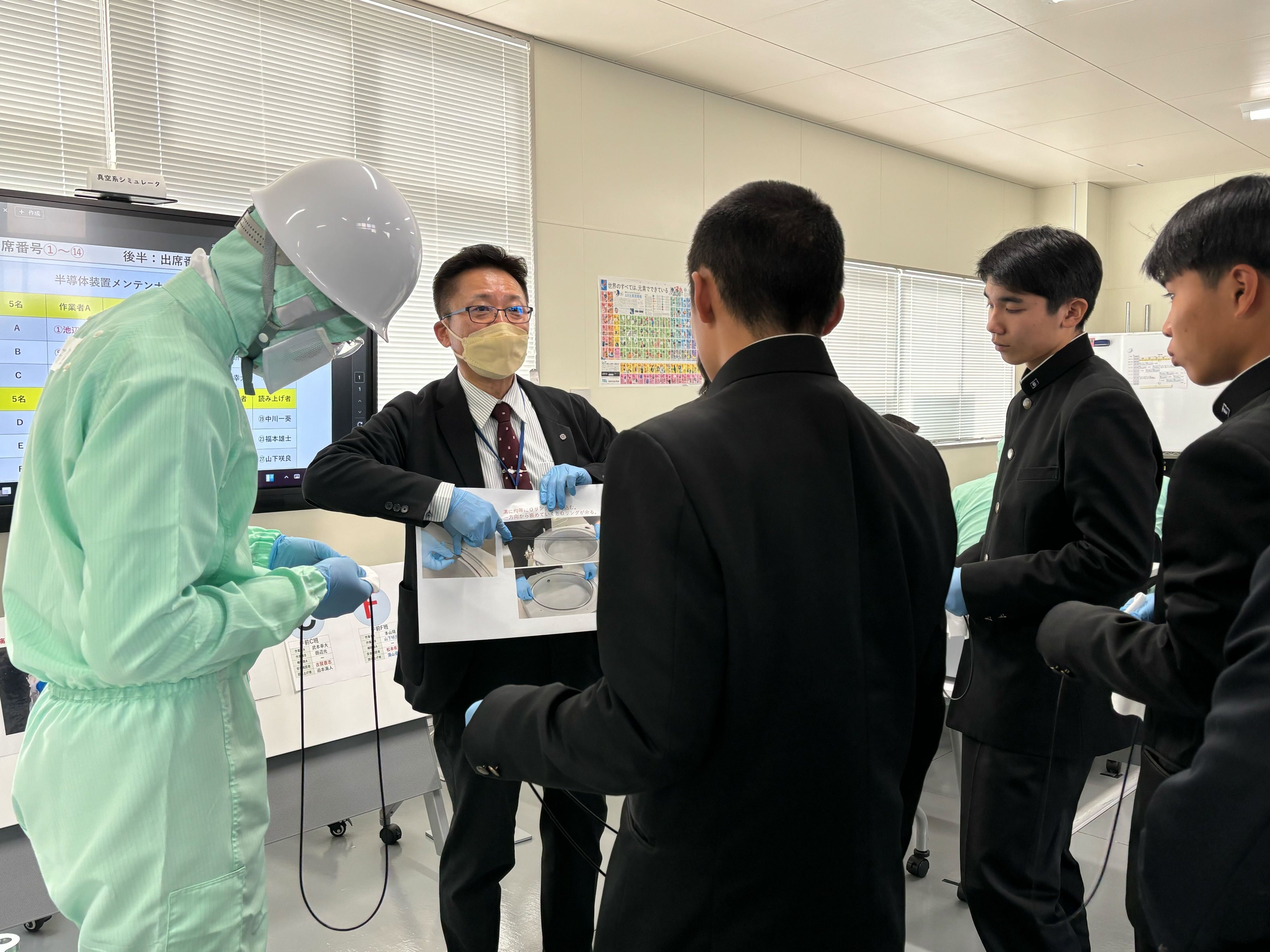 ・半導体製造装置の一つ一つの整備に時間がかかるということがわかった。高校1年生の時、半導体製造の研修を受けとても面白かったので、半導体製造の分野に進みたいと考えている。今日の研修を受けて、自分が将来取り組む内容が分かり良かった。今日は知識を深める良い機会になったので、残り1年の就職までの間に勉強を頑張り、今後の就職活動に役立てていきたい。