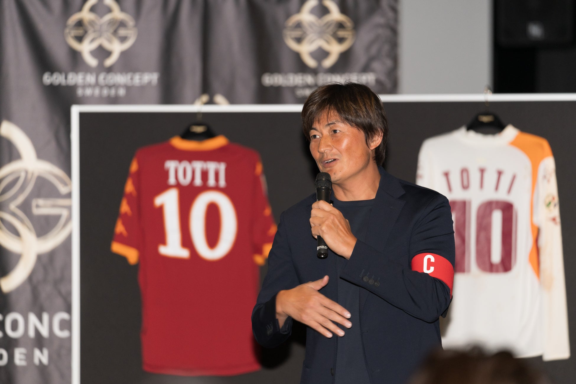 スペシャルゲストにも多数ご参加いただいた本イベントは、小柳ルミ子氏によるフランチェスコ・トッティ氏への花束贈呈から開始し、ドリブルデザイナー岡部将和氏とサッカー元日本代表の岩本輝雄氏を交えたトークセッションやリフティング対決など、見所の多いイベントとなりました。
